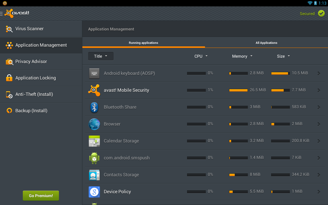■ avast! Mobile Security keeps your device safe from viruses, malware, and spyware.